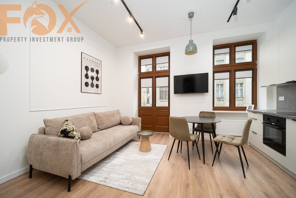Na wynajem studio, o powierzchni ok 25m2, położone na 2 piętrze, w pięknej, odrestaurowanej kamienicy przy ul. 1 Maja 11 w Łodzi,