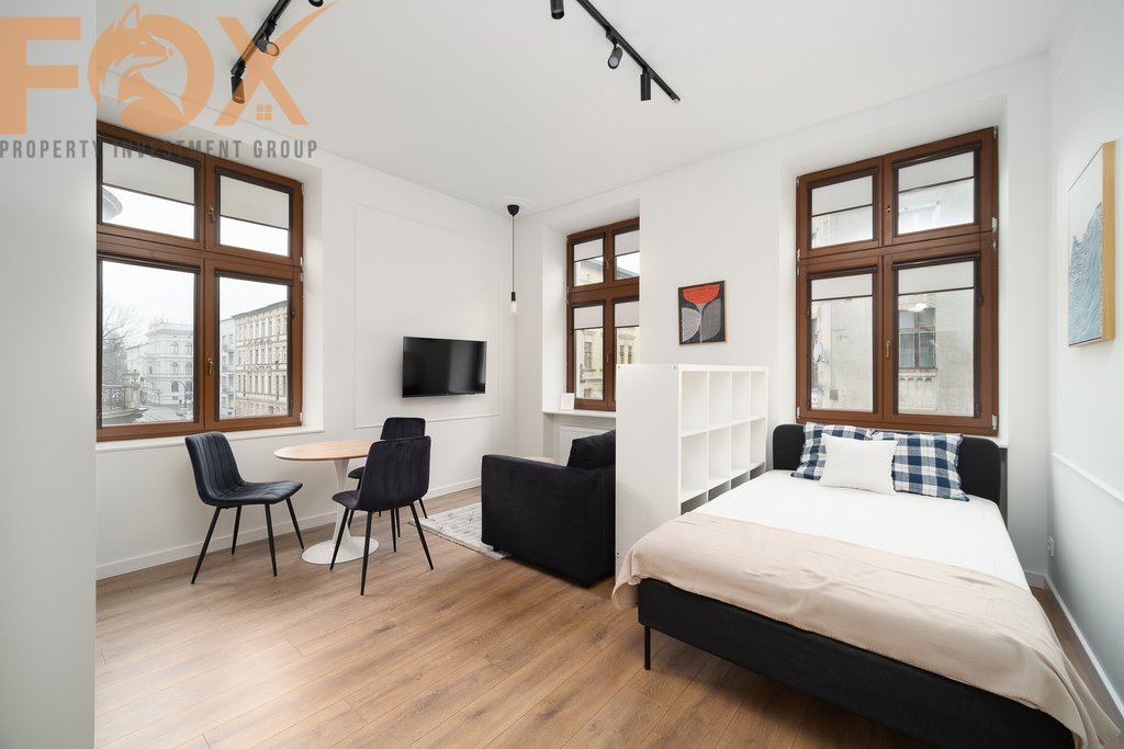 Na wynajem studio, o powierzchni ok 33m2, położone na 2 piętrze, w pięknej, odrestaurowanej kamienicy przy ul. 1 Maja 11 w Łodzi,