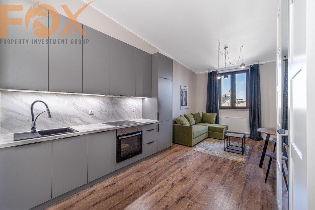 Mieszkanie składa się z kuchni, nowoczesnej łazienki z prysznicem, salonu z rozkładaną sofą, szafą, stołem i smart TV