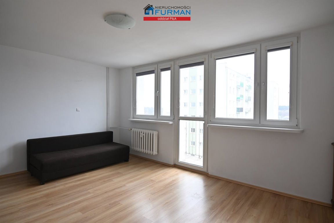 Do wynajęcia jasna i zadbana kawalerka o powierzchni 29,40 m², położona w centrum Piły, na 8 piętrze wieżowca z windą.