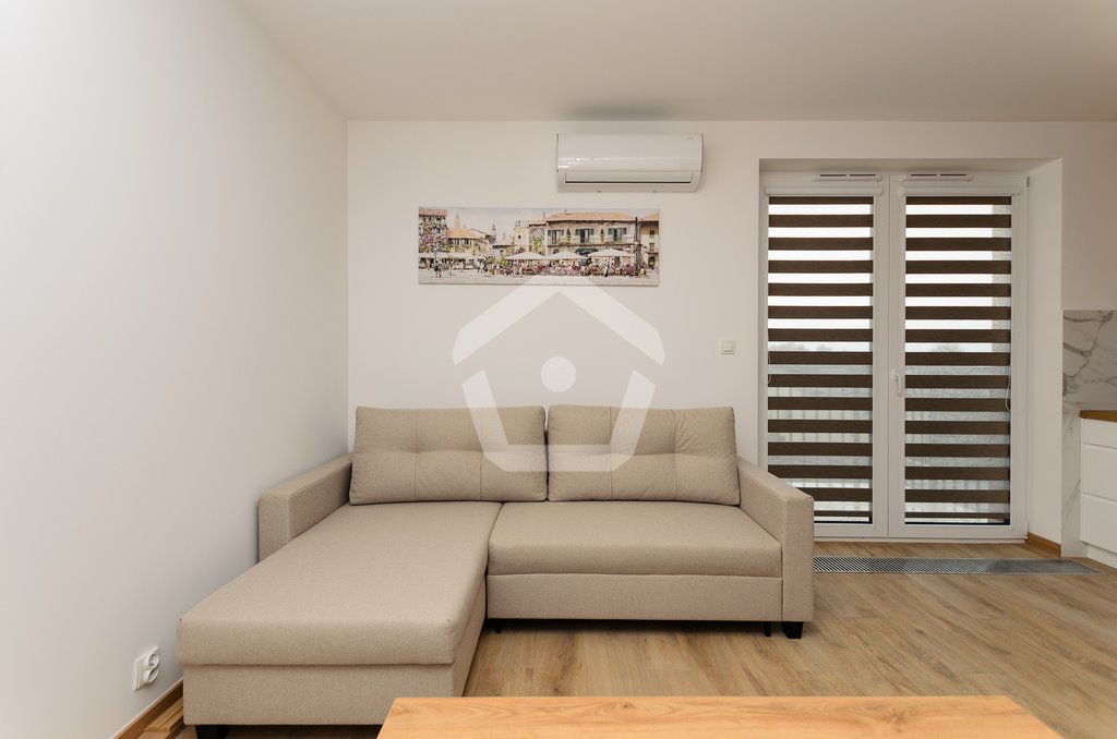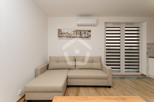 - Salon z aneksem kuchennym i wyjściem na balkon,