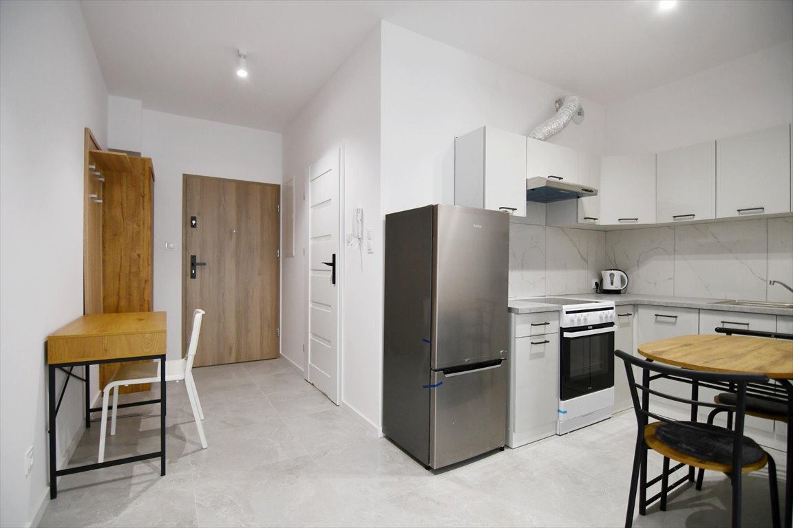 Mieszkanie umeblowane jak na zdjęciach. Na wyposażaniu mieszkania min. kuchnia w zabudowie z kuchenką elektryczną, piekarnikiem i lodówką, stół i krzesła. W łazience kabina prysznicowa z deszczownicą, pralka, umywalka z lustrem, geberit, szafki. W sypialni łóżko jednoosobowe z materacem i szufladami, komoda. W pokoju telewizor. W przedpokoju biurko z krzesłem, szafa, wieszak. Na życzenie najemcy jest możliwość wstawienia dodatkowych mebli lub wymiany łóżka na większe. W oknach są zamontowane rolety dzień-noc. Mieszkanie wyposażone w ogrzewanie podłogowe w łazience, przedpokoju i kuchni.