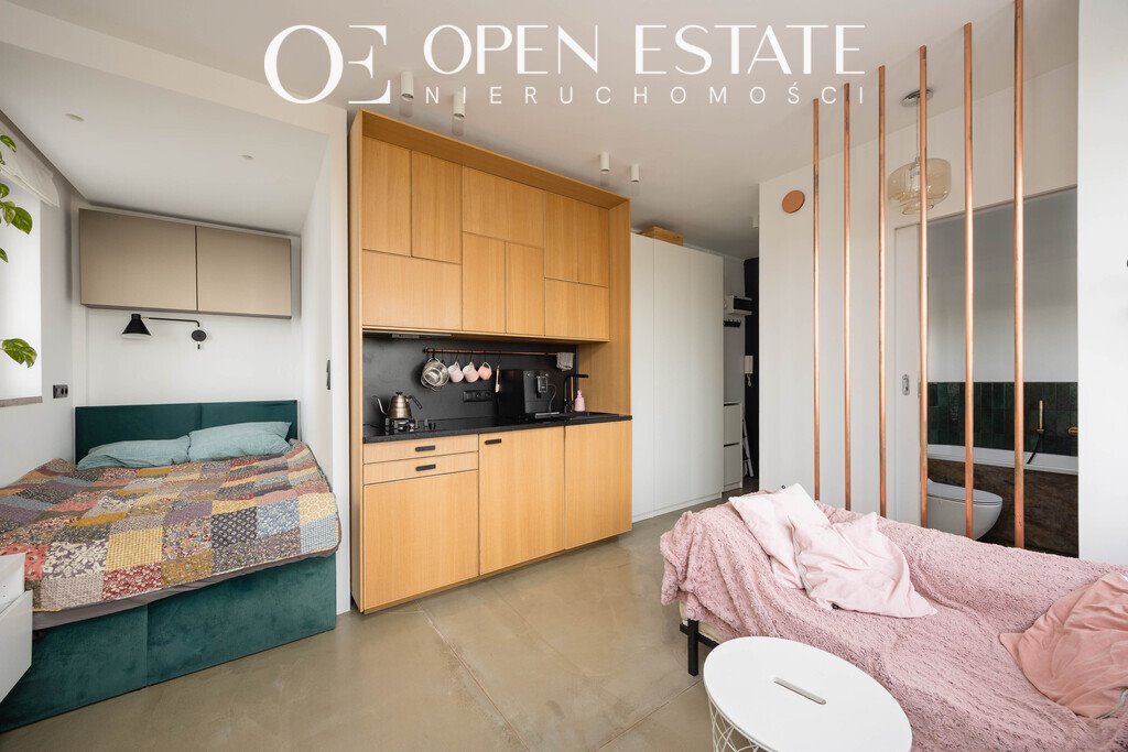 Mieszkanie przeszło generalny remont i zostało nowocześnie urządzone z dbałością o funkcjonalność przestrzeni. Kuchnia wyposażona jest w lodówkę, zmywarkę, płytę gazową, okap oraz ekspres do kawy. Łóżko posiada praktyczny pojemnik na pościel. W części dziennej znajduje się pojemna szafa, sofa, stolik, komoda oraz telewizor.