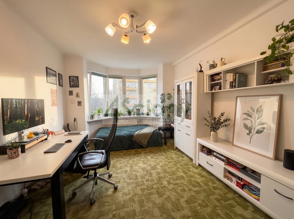 Bardzo widne, jednopokojowe mieszkanie z oddzielną kuchnią, o powierzchni 36m. Duży pokój 23m z ogromnym oknem wykuszowym, na podłodze wykładzina położona na parkiecie. Kuchnia 7m z oknem, na podłodze terakota. Łazienka 3,5m z wanną, glazura i terakota. Przedpokój 2,5m, na podłodze terakota, szafa wnękowa i pawlacz. Mieszkanie umeblowane, w pokoju funkcjonalne meble, dwuosobowa kanapa, stół z krzesłami, w kuchni kuchenka gazowa, okap i pralka, lodówka, zabudowa kuchenna. Okna PCV, drzwi antywłamaniowe. Okna skierowane na południowy wschód, dzięki czemu mieszkanie jest bardzo dobrze doświetlone. Budynek po remoncie, zamknięte i monitorowane podwórko, ochrona.