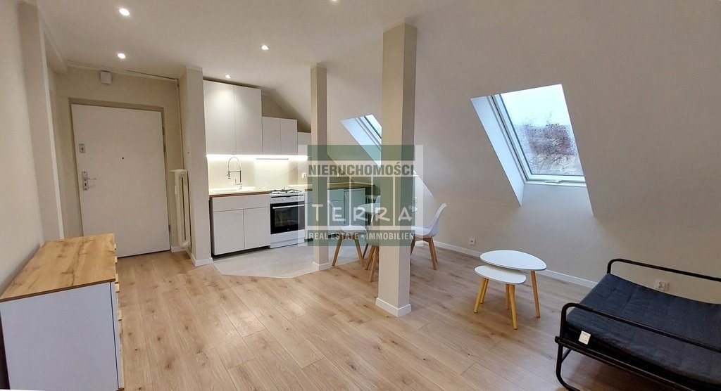 UKŁAD: przestronny pokój z aneksem kuchennym, schowaną we wnęce sypialnią oraz łazienka z dużym prysznicem (67/100 cm). Mieszkanie umeblowane. Okna pcv skierowane na wschód oraz połaciowe pięknie doświetlające wnętrze, we wszystkich oknach rolety wewnętrzne. Ogrzewanie miejskie, ciepła woda - junkers gazowy. Mieszkanie po generalnym remoncie, zadbane i przytulne, czeka na przyjęcie nowego najemcy. Kameralny budynek, jedynie 6 mieszkań.