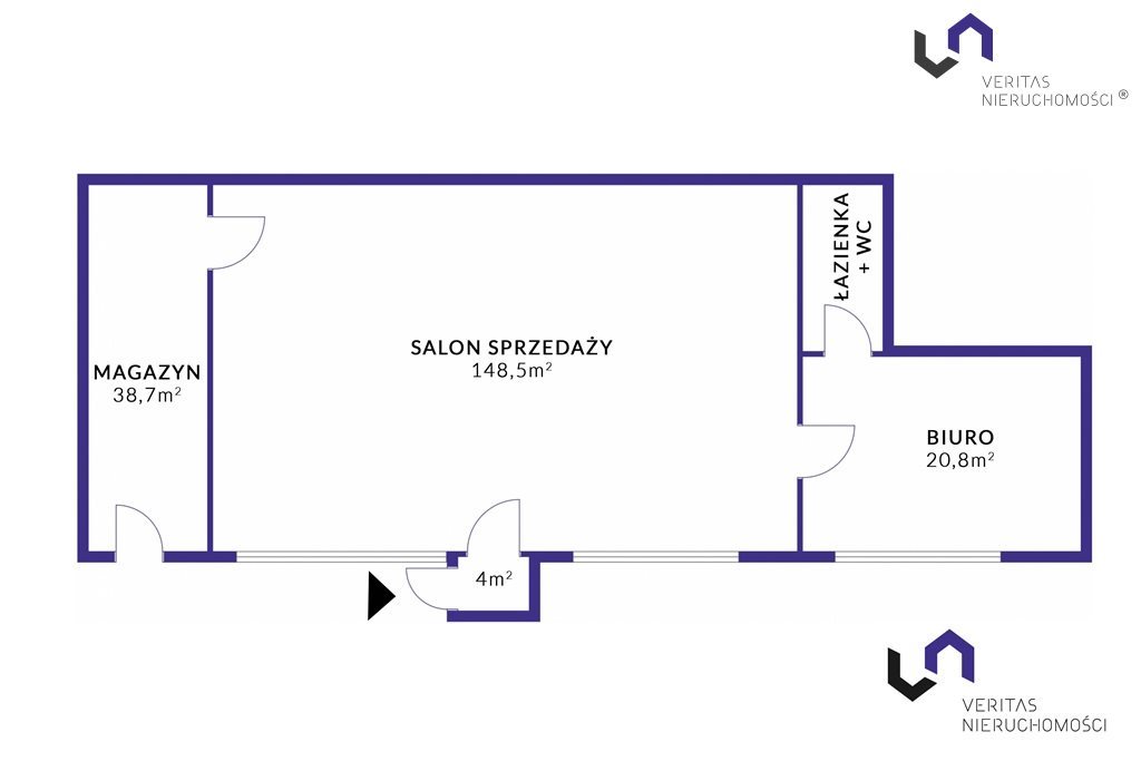 - Salon sprzedaży 148,5m2 (wejście bezpośrednie z ulicy)