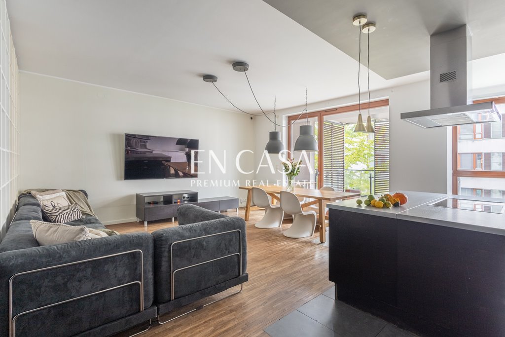 Mokotów. Eko Park, dobry standard, 121m2, 4 pokoje, 2 miejsca parkingowe, 2x łazienka, balkon.