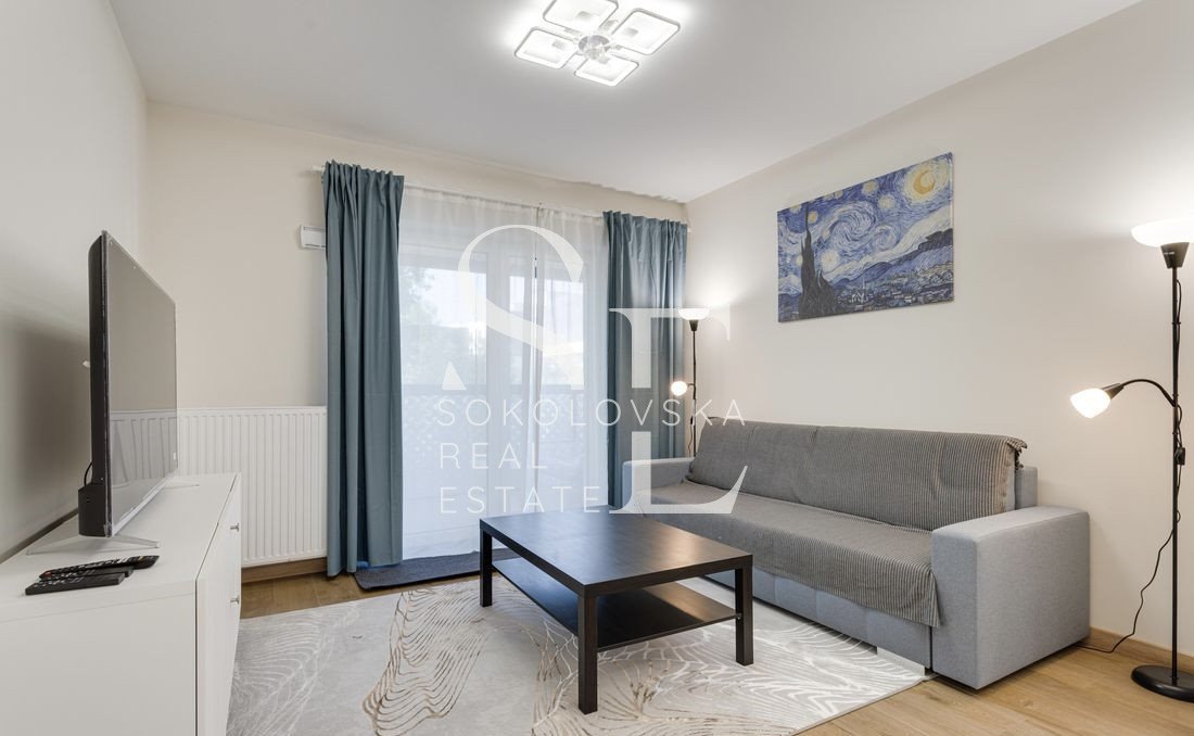 Mieszkanie kompletnie umeblowane i wyposażone w niezbędny sprzęt AGD (lodówka, piekarnik, płyta grzewcza, zmywarka, pralka, suszarka). W salonie wygodna strefa wypoczynkowa, w sypialniach łóżka oraz szafy do przechowywania.