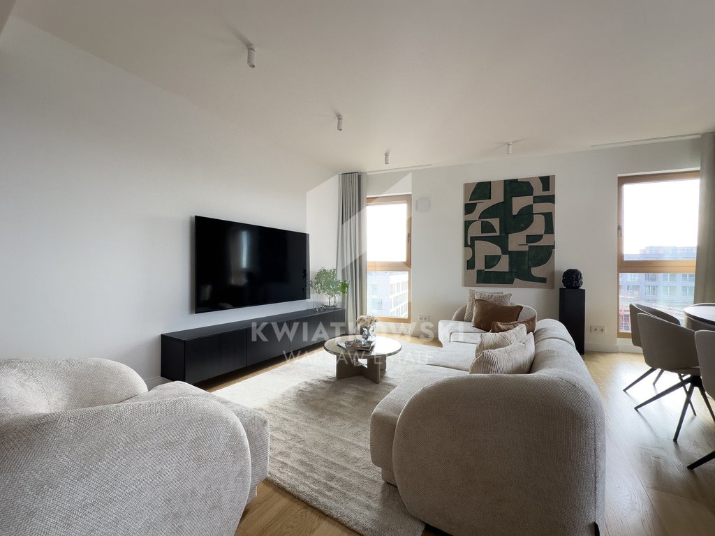 Do wynajęcia wyjątkowy, 4-pokojowy apartament o powierzchni 77 m², położony na 9 piętrze nowej inwestycji zlokalizowanej przy ul. Prostej – tuż obok Ronda Daszyńskiego i 19. Dzielnicy.