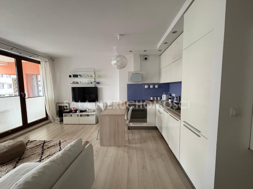 - pokój dzienny z aneksem kuchennym o pow. 23 mkw. z wyjściem na duży balkon- meble w kuchni wykonane na wymiar, w zabudowie lodówka, kuchenka indukcyjna, piekarnik elektryczny, miejsce przewidziane na zmywarkę,