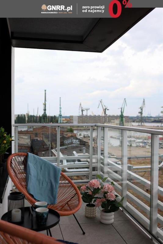Nowe, przytulne, designerskie mieszkanie z dużym balkonem i ładnym widokiem, na wynajem długoterminowy! Świetna lokalizacja w rozwijającej się części Gdańska - Osiedle Doki obok Stoczni.