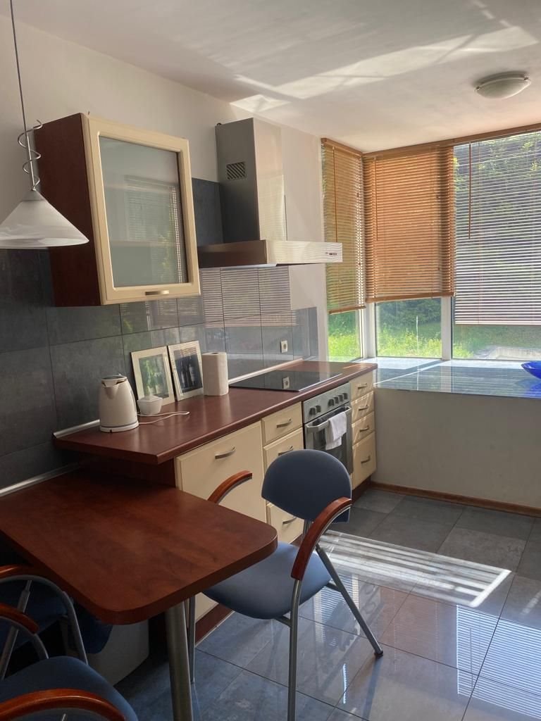 Mieszkanie położone na I piętrze, o powierzchni ok. 60 m. kw., bardzo widne i słoneczne, składające się z salonu z wyjściem na duży balkon, kuchni, sypialni i 2 łazienek. Duże, przestronne okna. Piękny widok z okien na ogród. . Mieszkanie kompletnie wyposażone (naczynia, pościel, ręczniki, zmywarka, system satelitarny do odbioru TV, Wi-Fi). Mieszkanie wraz z usługą sprzątania - obejmujące także wymianę pościeli i ręczników, drobnego prania i prasowania - zapewniające gościom komfort mieszkania. Koszty eksploatacji oraz usługi sprzątania wliczone w stałą kwotę 900 PLN, dodatkowo tylko energia elektryczna wg stanu licznika. Kaucja 3000 PLN.