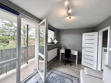 - słonecznego salonu z wyjściem na balkon z którego roztacza się widok na panoramę miasta