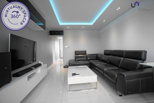 - Duzy przestronny Salon(duża kanapa, stolik kawowy, biurko z krzesłem, telewizor, soundbar, klimatyzacja ) z wyjściem na balkon - widok w kierunku Katedry, Stadionu Śląskiego