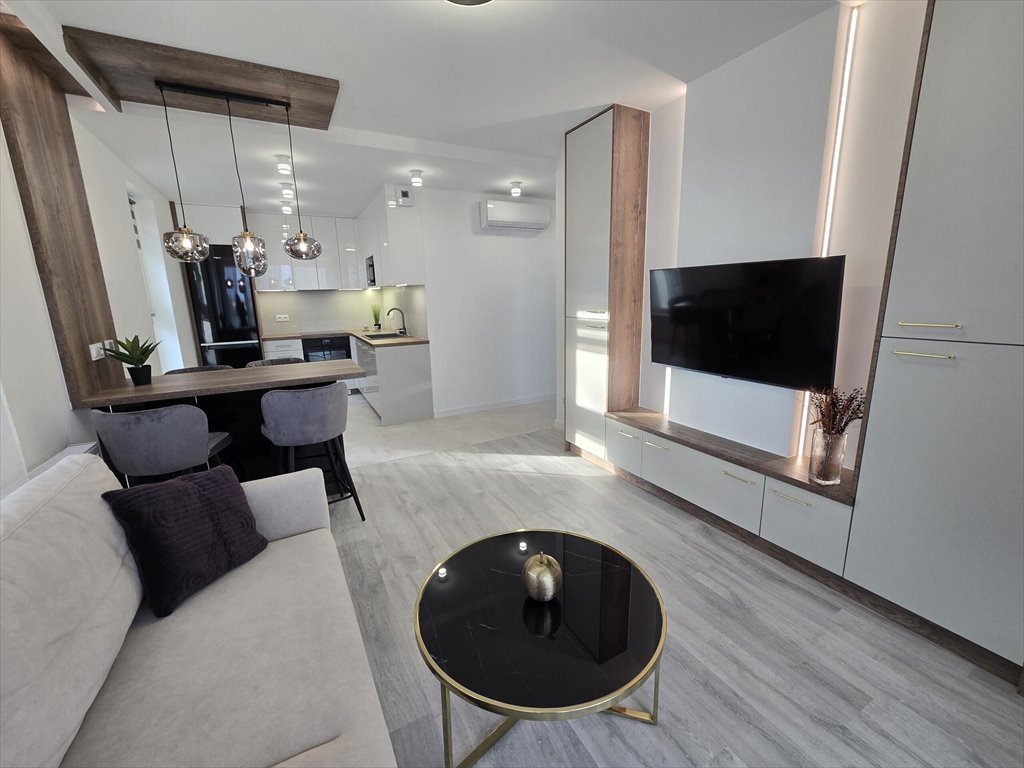 Mieszkanie o powierzchni 42,89 m zostało zaprojektowane przez profesjonalnego architekta wnętrz i wykończone z dbałością o każdy detal. Jest w pełni umeblowane i wyposażone w nowy sprzęt AGD na gwarancji, w tym zmywarkę, piekarnik, pralkę i lodówkę. Jasne, przestronne wnętrza z dużymi oknami zapewniają mnóstwo naturalnego światła, a układ mieszkania sprawia, że jest ono wyjątkowo funkcjonalne.
