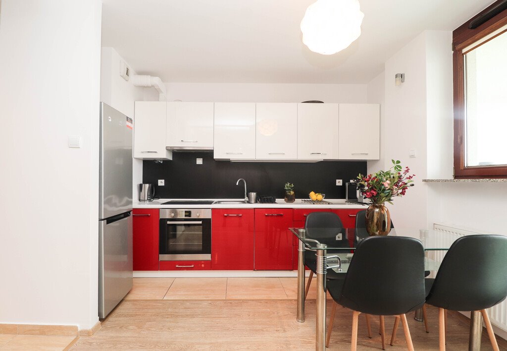 The apartment is situated in one of the best-connected areas of Kraków. The location provides excellent access to the city center – quick and convenient both by car and public transport. Nearby you will find the popular Błonia Krakowskie, numerous cycling paths, and parks. There are bus stops within walking distance, as well as easy access to the Kraków ring road and the airport in Balice.