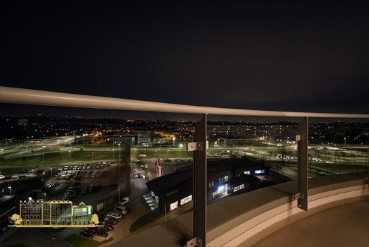 Nieruchomość posiada balkon na długość całego mieszkania, dzięki czemu zarówno z salonu, jak i sypialni rozpościera się piękna panorama Krakowa — w dzień i w nocy robi ogromne wrażenie.