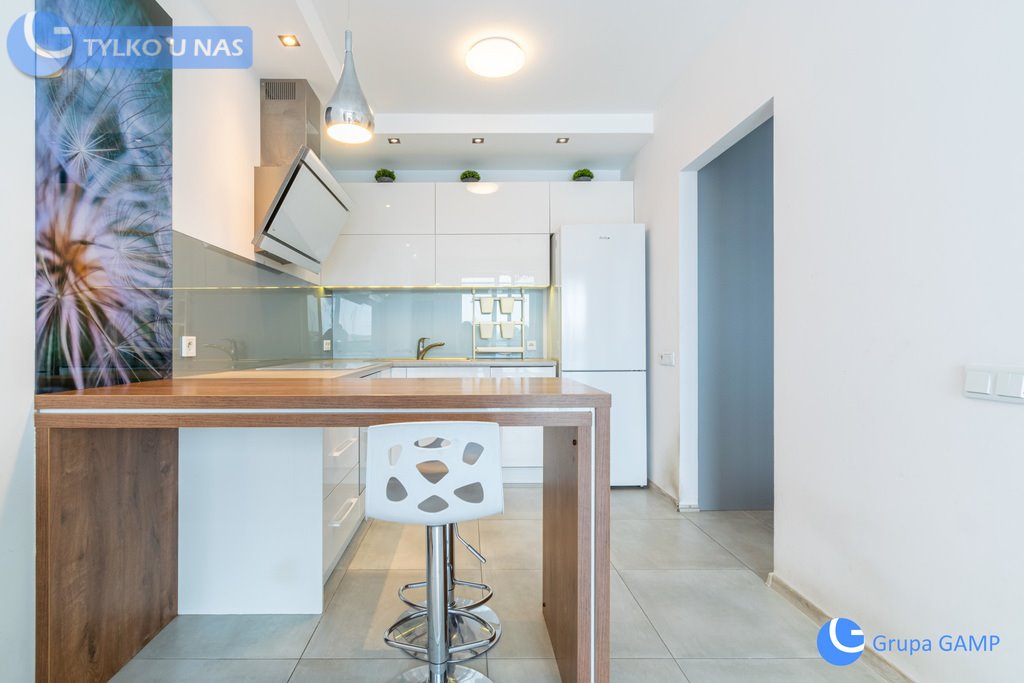 - Wyposażenie: Kuchnia (lodówka, zmywarka, piekarnik, płyta indukcyjna), łazienka (pralka, wanna z prysznicem), pojemne szafy w sypialni i przedpokoju.