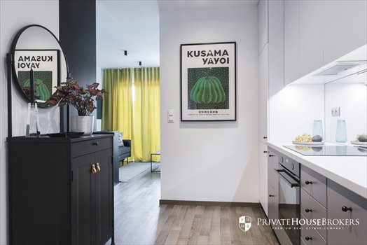 It is located on the 6th and last floor of a new investment at ul. Prandoty. The apartment is fully equipped and finished to a high standard. The apartment includes a balcony. On an area of approx. 30 m2, we have a separate bedroom, living room, kitchenette and bathroom. In the living room there is a sofa bed, TV, dining room with stools.