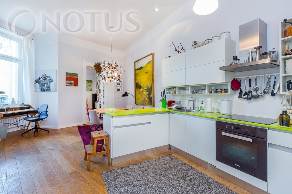 Apartament położony na drugim piętrze, z balkonem wychodzącym na cichą ulicę, zachwyca od pierwszego wejścia wysokością wnętrz, światłem i harmonią przestrzeni. To miejsce, które oddycha — idealne do życia, pracy, odpoczynku.