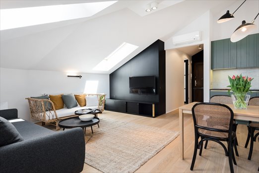 The apartment was designed based on an individual project, making it well-thought-out and functional. It is furnished to a high standard, meeting even the most demanding expectations (wooden flooring, high-quality interior fittings, air conditioning). The apartment's uniqueness is further enhanced by its location on the top floor and the adjoining terrace, which is an ideal place to relax on warm summer evenings. From the terrace, you can see the towers of the Royal Castle on Wawel Hill.