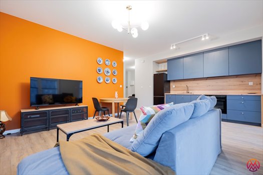 Salon wyposażony został w komfortową sofę wypoczynkową, szafkę RTV, TV, stół z krzesłami, rolety w każdym oknie. Aneks kuchenny posiada wszystkie niezbędne sprzęty: lodówkę z zamrażarką, zmywarkę, płytę i piekarnik, okap. W sypialni łóżko dwuosobowe, z komfortowym wygodnym materacem. Przestronne pomieszczenie - garderoba z pralką. W łazience kabina z deszczownicą, toaleta, umywalka z szafką i lustrem w zabudowie.
