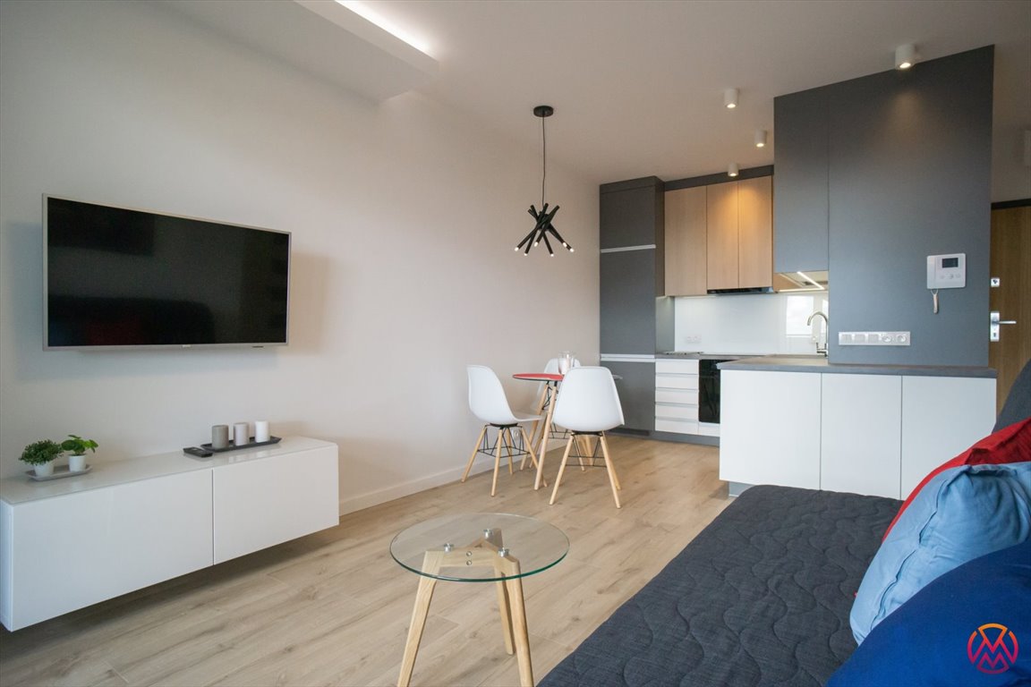 Nowocześni i funkcjonalnie urządzone. W salonie znajduje się wygodna kanapa z funkcją spania, stół z krzesłami, szafka RTV, TV, stolik kawowy. Aneks kuchenny w pełni wyposażony we wszystkie niezbędne sprzęty m.in. lodówko-zamrażarka, zmywarka, płyta indukcyjna, piekarnik. W sypialni znajdziemy podwójne łóżko wraz z materacem, pakowną szafę w zabudowie oraz biurko z krzesłem. Łazienka z prysznicem, toaletą, umywalką i pralką. W przedpokoju znalazła swoje miejsce bardzo pakowna szafa w zabudowie.