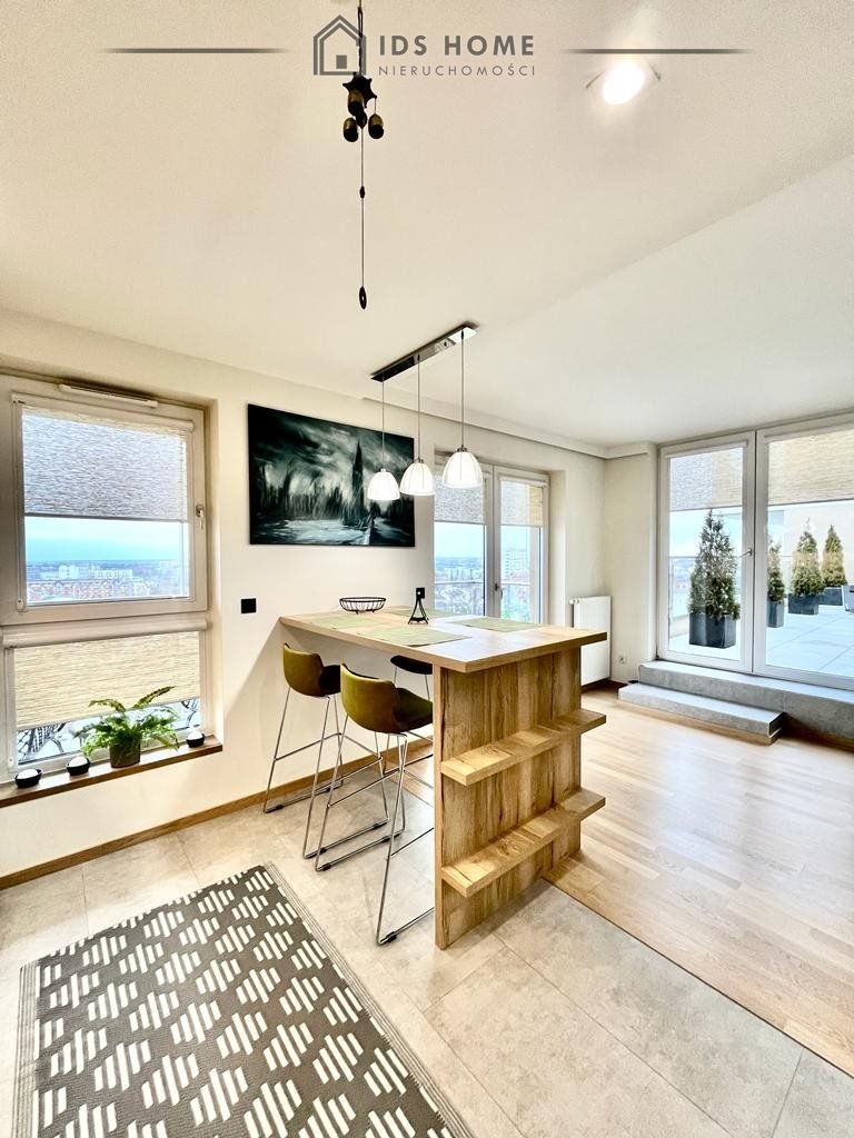 Apartament znajduje się na 9 piętrze i posiada przepiękny taras pod gołym niebem. Został on komfortowo zaplanowany z antresolą, wygodnym wypoczynkiem, doprowadzonym prądem i wodą tak by można było z niego wygodnie korzystać. Odległość do centrum miasta to ok. 12min. pieszo.