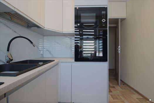 zadbane i w pełni wyposażone, kuchnia w zabudowie pod wymiar ze sprzętem AGD: płyta indukcyjna, piekarnik elektryczny, lodówka, zmywarka, mikrofala, pralka,