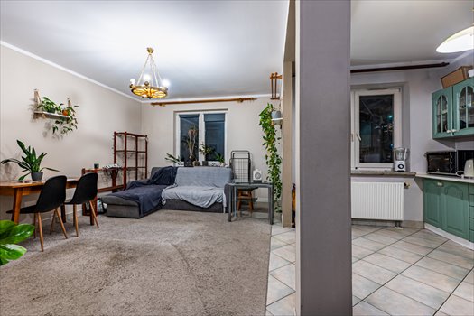 -Salon z otwartą kuchnią oraz wyjściem na balkon