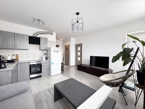 - salon z aneksem kuchennym i wyjściem na balkon,