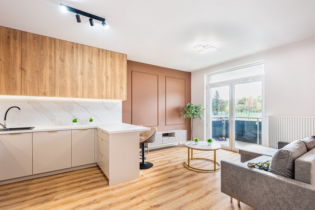 Mieszkanie wykończone w wysokim standardzie, umeblowane oraz wyposażone we wszystkie niezbędne sprzęty AGD.