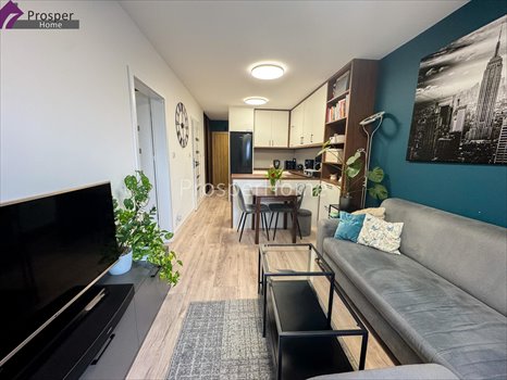 - jasny salon z aneksem kuchennym serce mieszkania, idealne do odpoczynku i spotkań,