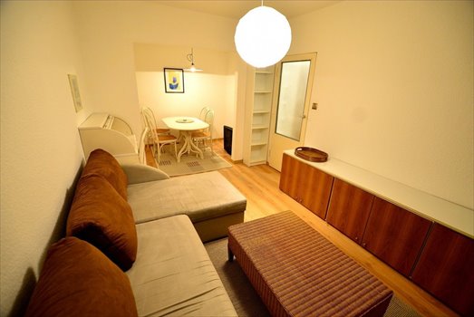 W komfortowo urządzonym salonie znajduje się duża rozkłada sofa w stanie idealnym, mały stolik kawowy, długa i pojemna szafka pod telewizor (który również zawiera się w wyposażeniu mieszkania;), sekretarzyk, stół wraz z krzesłami oraz regały. Urok i przytulność pomieszczeniu nadają rozmieszczone dywaniki oraz obrazy.