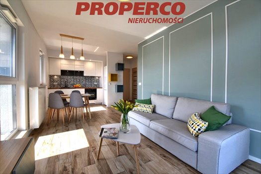 Mieszkanie umeblowane i wyposażone w sprzęt AGD (lodówka, piekarnik, zmywarka, płyta indukcyjna, pralka). Pomieszczenia: salon z aneksem kuchennym, balkon, sypialnia, łazienka z WC, przedpokój, garderoba.