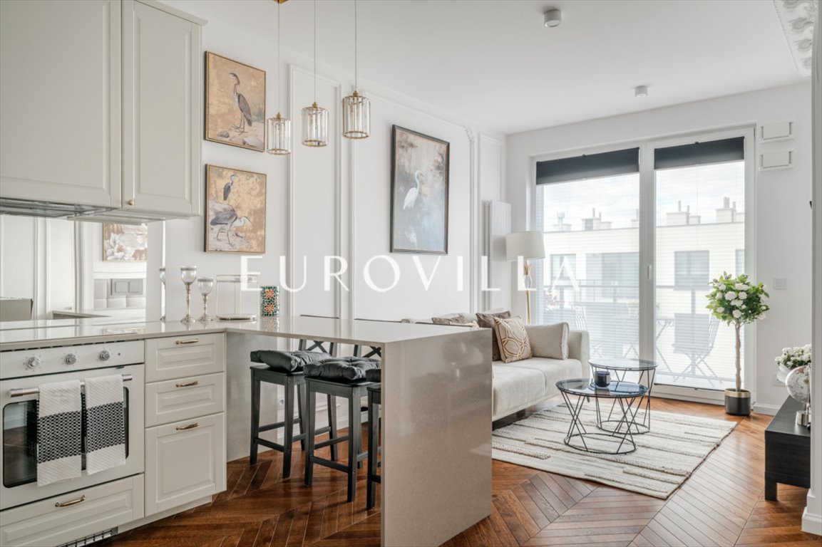 EUROVILLA prezentuje eleganckie mieszkanie w bardzo wysokim standardzie, nigdy niezamieszkałe o powierzchni niespełna 35 m2. Mieszkanie gotowe do wejścia, całkowicie wyposażone. Przemyślany układ wnętrza obejmuje kuchnię otwartą na jasny, przestronny salon, przytulną sypialnię z garderobą oraz elegancką łazienkę z prysznicem. Starannie dobrane elementy, takie jak ręcznie wykonana sztukateria oraz meble wysokiej klasy, nadają wnętrzu niepowtarzalny charakter i ponadczasowy styl.