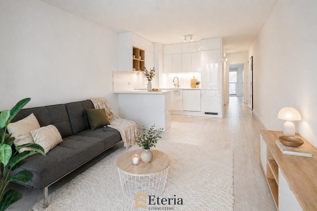 -Salon z aneksem kuchennym i wyjściem na duży balkon