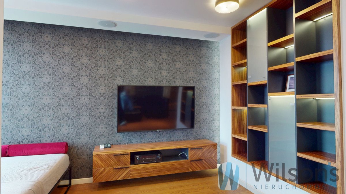 System Audio & Hi-Fi: Prawdziwa gratka dla melomanów. Mieszkanie posiada zintegrowany system nagłośnienia z głośnikami sufitowymi, podzielony na sekcje (salon oraz łazienka), co pozwala na słuchanie muzyki w całym apartamencie.