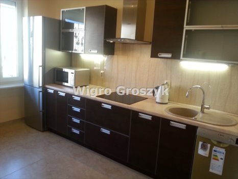 Mieszkanie całkowicie umeblowane. Kuchnia widna, oddzielna, duża, wyposażona, wyposażona w zmywarkę, mikrofalówkę, płytę indukcyjną, lodówkę z zamrażalnikiem, stół i krzesła.