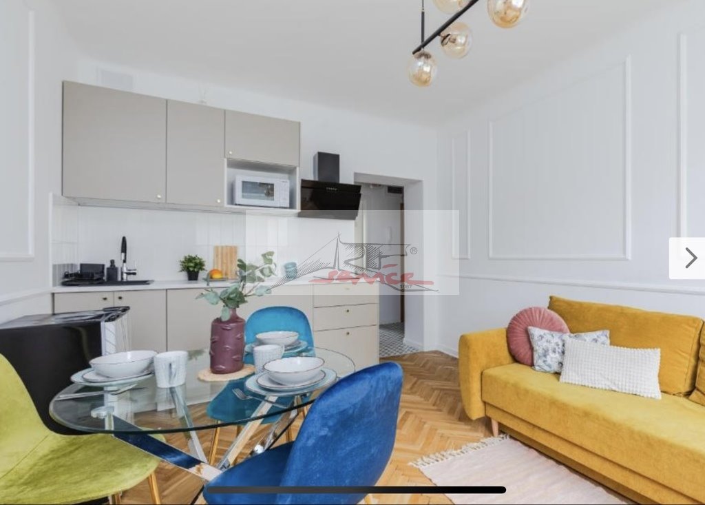 Doskonała lokalizacja w centrum Miasta z dobrą komunikacją, metro, kawiarenki, sklepy, restauracje, kina, Muzea. Dwa eleganckie pokoje o wysokim standardzie z otwartą kuchnią - łącznie ca 32m. Wygodna sypialnia z tapicerowanym dwuosobowym łóżkiem i szafą oraz toaletką mogącą służyć za biurko do pracy. Tapeta z egzotycznym ptakiem dodaje wnętrzu bajkowości. W salonie na podłodze parkiet z litego drewna dębowego, ściany ozdabia sztukateria, a duże okno pięknie rozświetla wnętrze. Okalają je długie welurowe zasłony. Nad kanapą z miodowego pluszu zawisa lampa podłogowa, na suficie efektowne złote klosze. Po rozłożeniu kanapy otrzymujemy dwa dodatkowe miejsca do spania. Komoda z tv. W strefie jadalni nowoczesny stół i wygodne tapicerowane krzesła. Elegancka kuchnia ze złotymi akcentami wyposażona w lodówkę, płytę indukcyjną, wyciąg kuchenny, mikrofalówkę oraz pralkę, zmywarkę. W szafkach znajdziecie Państwo talerze, garnki, sztućce i kubki. Dla Państwa wygody do dyspozycji jest również żelazko i odkurzacz. Łazienka w nowoczesnym stylu utrzymana w czerni i bieli przełamanej pudrowym różem, z instalacjami podtynkowymi, podwieszanym WC i wygodną kabiną prysznicową. Wzór terakotowej mozaiki z podłogi powtarza się przedpokoju. Znajdziemy w nim pawlacz wykonany na wymiar z mnóstwem przestrzeni do przechowywania. Do mieszkania należy również piwnica, gdzie zmieści się rower. Mieszkanie jest pełne klasy i uroku, zadbaliśmy w nim o każdy szczegół, aby korzystanie z niego było dla Państwa samą przyjemnością. Obcokrajowcy mile widziani, zapraszamy ze zwierzętami. Podpisujemy umowę na minimum 6 miesięcy, pobieramy kaucje w wysokości jednego czynszu.Możliwość wynajęcia miejsca garażowego z monitoringiem za 550zl/mc Prezentacja nieruchomości wyłącznie przez Art-Service Real Estate Strategy Nieruchomości zapraszam.