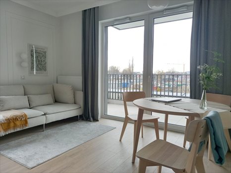 Mieszkanie jest nowe, w pełni umeblowane i wyposażone jak na zdjęciach. Lokal składa się z salonu z aneksem kuchennym z wyjściem na balkon, sypialni, łazienki i przedpokoju.