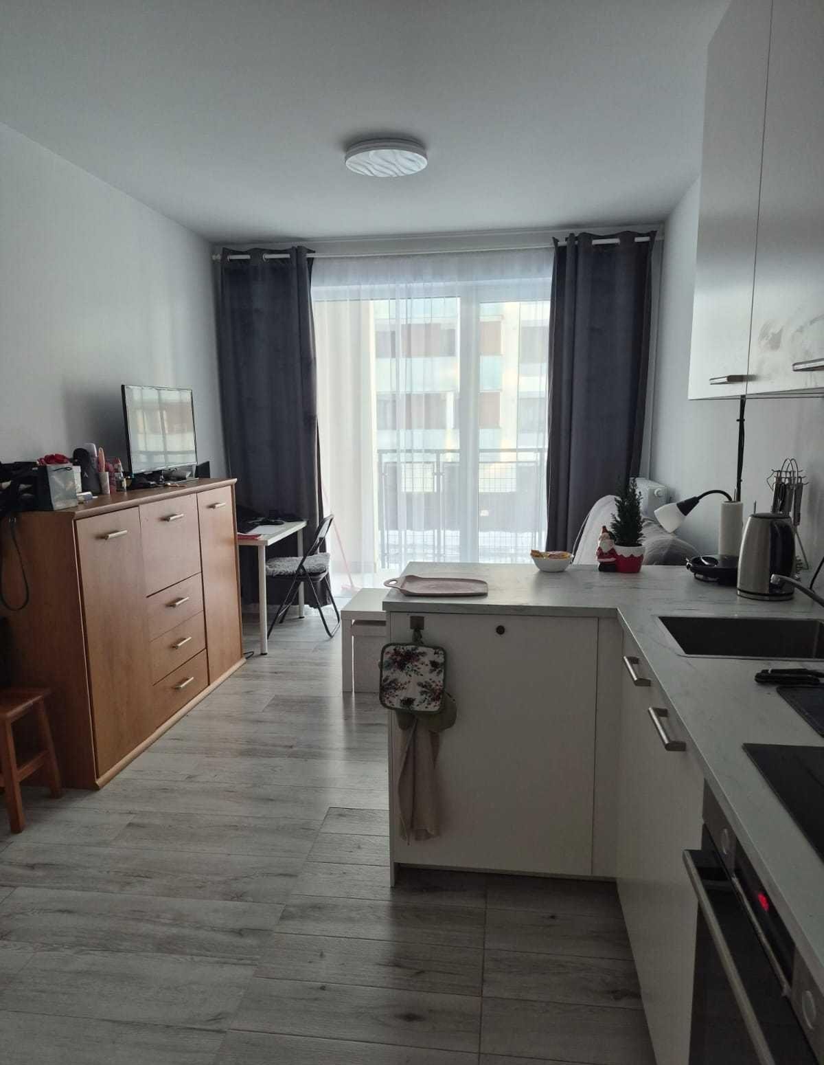 Do wynajęcia dwupokojowe mieszkanie w pełni umeblowane i wyposażone w sprzęt AGT i RTV. W mieszkaniu znajduje się wyposażenie renomowanych firm tj. lodówka, zmywarka, piekarnik, płyta indukcyjna, dwa telewizory, pralka. Wyposażone jest w bardzo wygodne łóżko sypialniane z szafkami, wygodną wersalkę. Znajdują się w nim pojemne szafki. Do mieszkania przynależy bardzo przestronny, duży balkon.