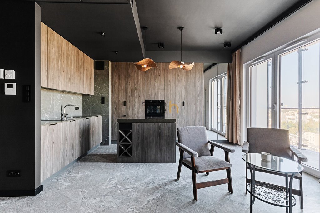 Mieszkanie zostało wykończone z najwyższej klasy materiałów, nowoczesna i w pełni wyposażona kuchnia z meblami na wymiar, z płytą indykacyjną, lodówką, piekarnikiem oraz zmywarką-sprzęt marki Samsung oraz Amica.