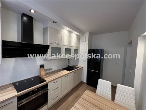 - w kuchni: pełna zabudowa, kuchenka indukcyjna, piekarnik, lodówka, zmywarka, stół, krzesła