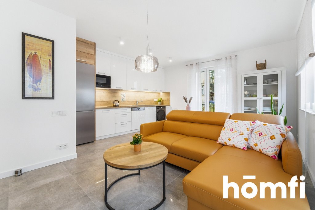The property is located in a modern apartment building completed in 2024. The building's architecture harmoniously blends with the surrounding historic tenement houses, creating a cohesive and aesthetically pleasing whole. The area is fenced, providing residents with a sense of privacy and security. The apartment, with an area of approximately 51.10 m², is located on the ground floor of a small building with just 12 units.