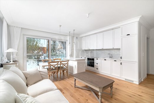 3-pokojowe mieszkanie usytuowane na 2 piętrze budynku. Na powierzchnię 70 m2 składają się: salon z aneksem kuchennym, 2 sypialnie, w tym jedna z garderobą i łazienka. W głównej sypialni i holu duże szafy w zabudowie na wymiar. Mieszkanie zostało zaprojektowane przez architekta z wykorzystaniem najwyższej jakości materiałów: na podłodze deski drewniane, zabudowy i meble wolnostojące drewniane, armatura w łazience Villeroy & Boch, okna trzyszybowe, w salonie przesuwne witryny z wyjściem na balkon. Łazienka wyposażona w prysznic. Kuchnia z komfortową wyspą wyposażona we wszystkie niezbędne sprzęty AGD. Dzięki dużej ilości okien i zachodniej ekspozycji, mieszkanie jest jasne i dobrze doświetlone.