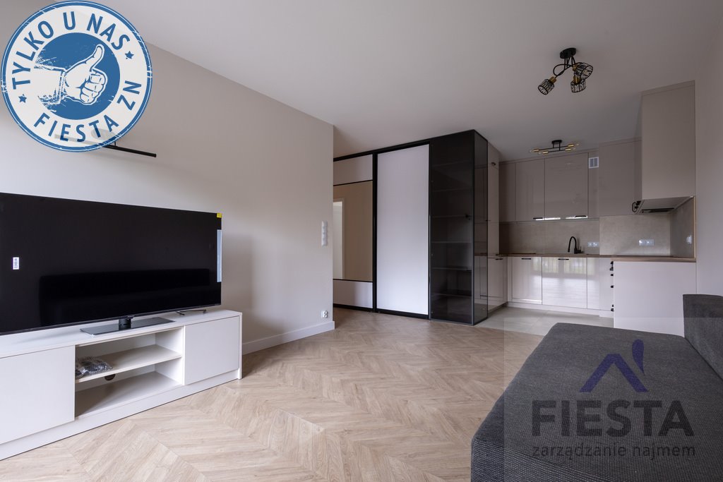 - salon z aneksem, który mieści w sobie w pełni wyposażoną kuchnię (lodówka, piekarnik, płyta indukcyjna, zmywarka w zabudowie), rozkładaną kanapę i telewizor.