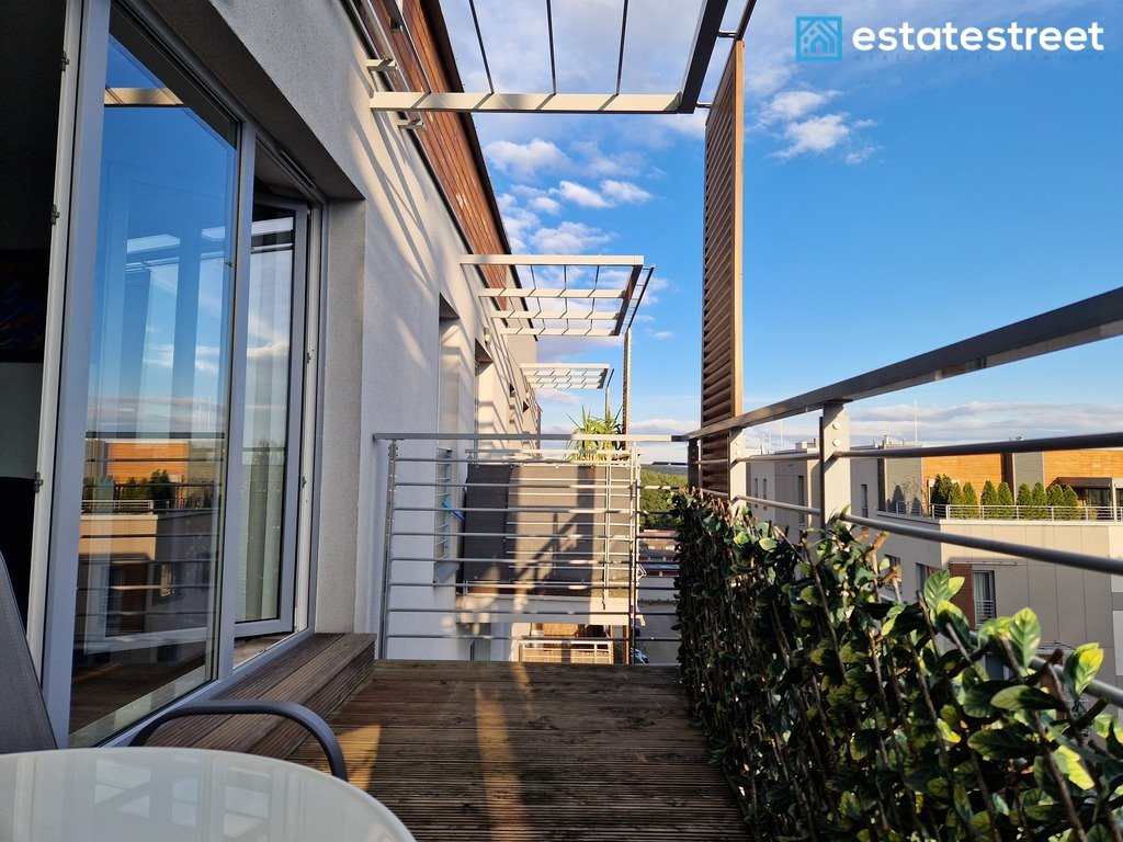 Z salonu wyjście na duży balkon ok.8m2 z widokiem częściowo na las.