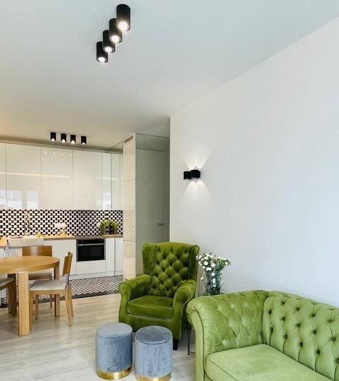 Lokal jest w pełni umeblowany i wyposażony w niezbędny sprzęt AGD oraz elementy codziennego użytku, dzięki czemu jest gotowy do wprowadzenia się od zaraz.