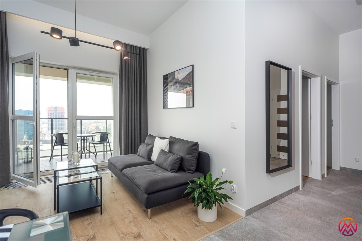 Do wynajęcia 3-pokojowy apartament o powierzchni ok. 53 m 2 wraz z tarasem ok. 8 m 2 . Apartament położony jest na 16 piętrze apartamentowca w nowym etapie inwestycji Ilumino przy ulicy Kilińskiego.